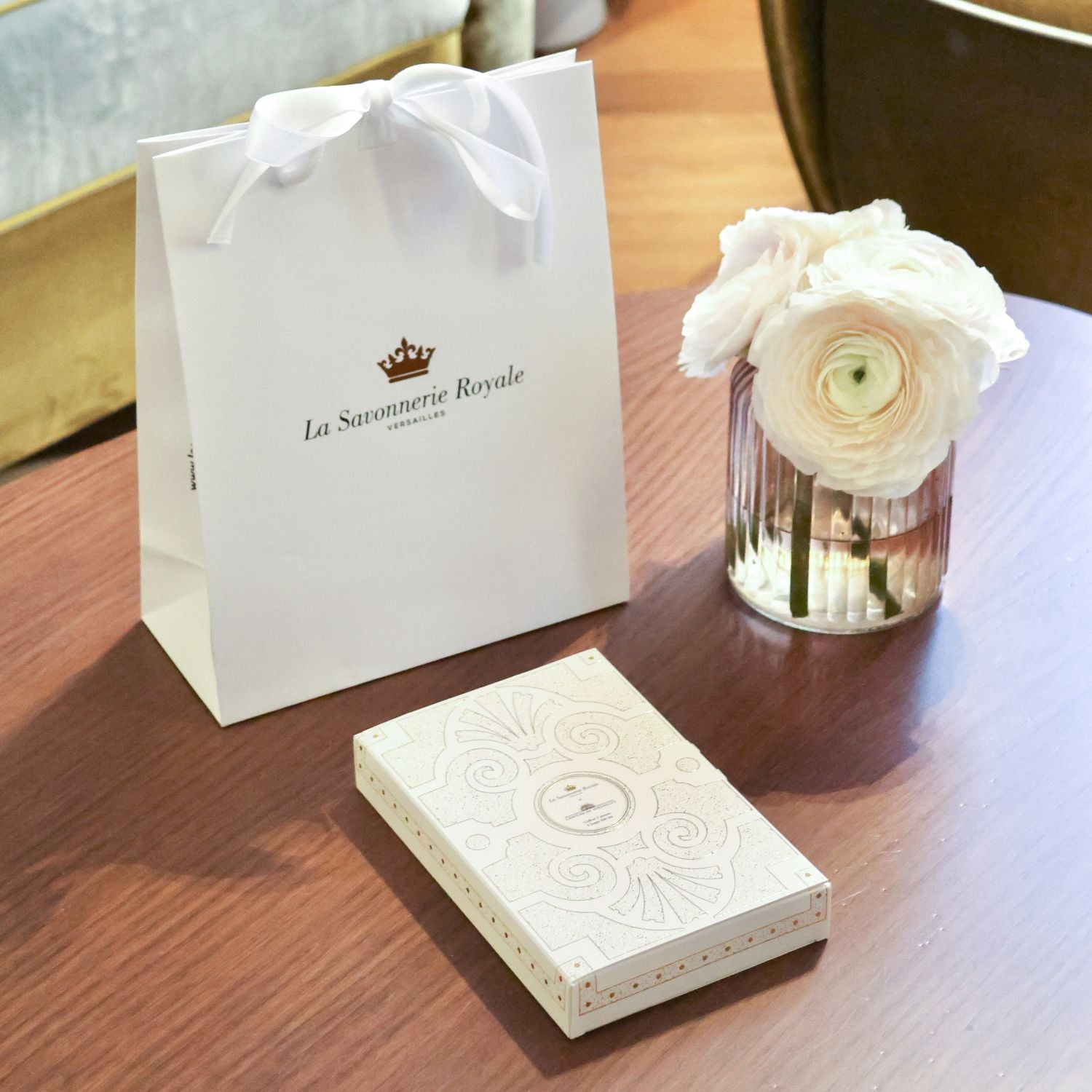Découvrez l'univers olfactif d'une balade dans les jardins du château de Versailles, avec le Coffret 3 savons réalisé en partenariat avec le château de Versailles.