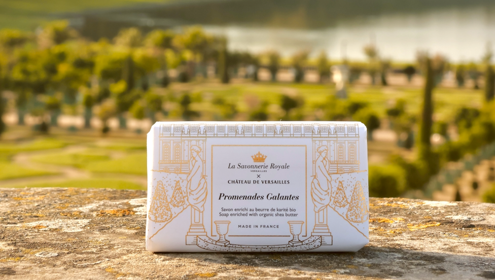 Évadez-vous avec notre collection de savons Promenades Galantes créée en collaboration avec le Château de Versailles. Un savon solide élégant enrichi au beurre de karité bio avec une fleur de lys gravée en relief. Ce savon Promenades Galantes vous invite pour une parenthèse de bien-être avec son parfum frais et floral composé de notes de rose, de lilas et de jasmin.